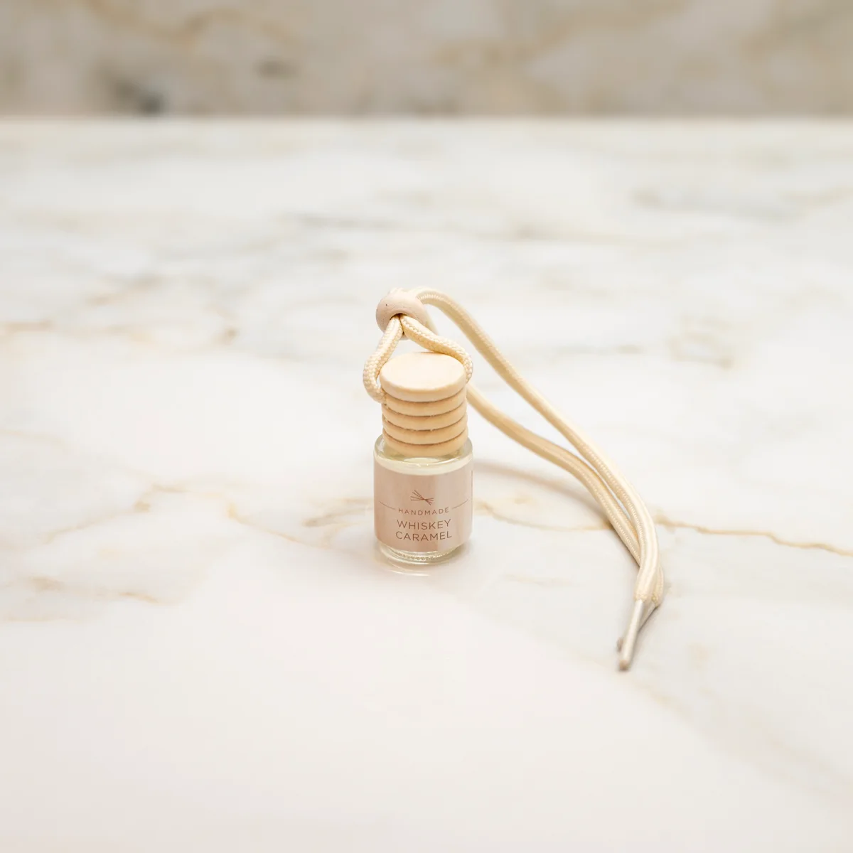 Αφαιρέστε το ξύλινο πώμα από το δοχείο και στη συνέχεια το πλαστικό προστατευτικό. Κλείστε το αρχικό πώμα, σφίγγοντάς το καλά. Αναποδογυρίστε το μπουκαλάκι για 1-2 δευτερόλεπτα, για να υγρανθεί το πώμα και να αναδυθεί το άρωμα. Έπειτα, τοποθετήστε το στη θέση που επιθυμείτε (με το ξύλινο πώμα προς τα πάνω), χρησιμοποιώντας την ξύλινη μπίλια, για να προσαρμόσετε το μήκος του και δέστε το σχοινάκι σφιχτά.