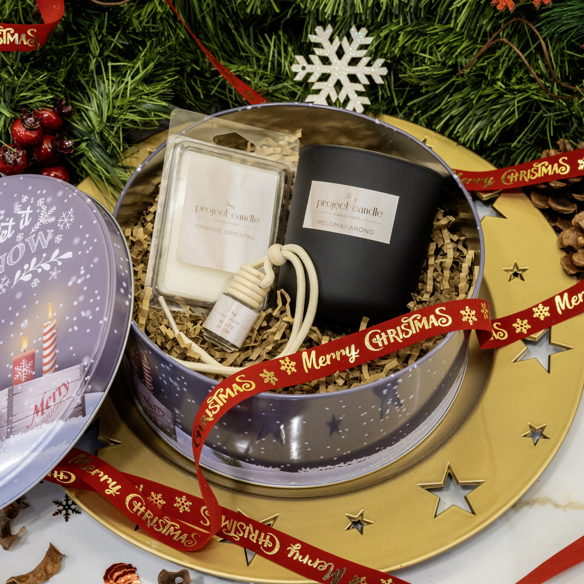 Περιλαμβάνει 1 αρωματικό κερί, 1 wax melt και 1 αρωματικό αυτοκινήτου της επιλογής σου — όλα φτιαγμένα στο χέρι με μεράκι και αγάπη, για να σκορπίσουν γιορτινά αρώματα όπου κι αν βρίσκεσαι.